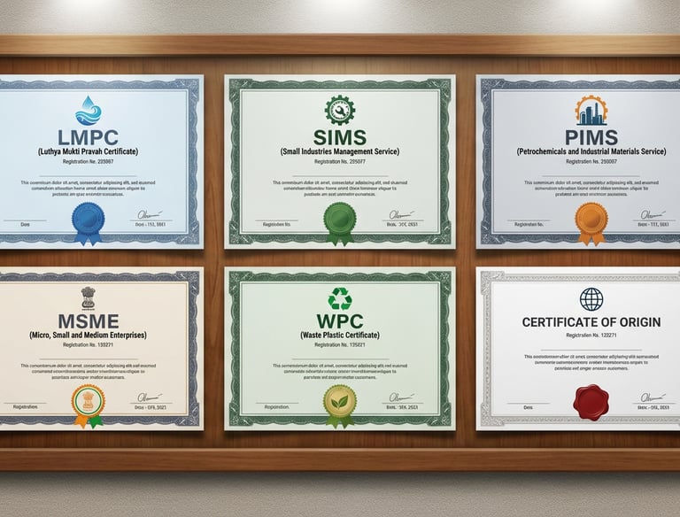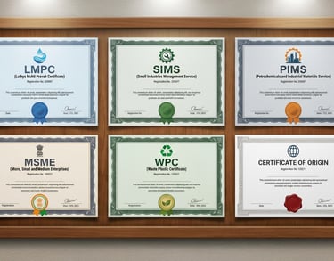 e.g. LMPC, SIMS, PIMS, MSME, WPC, Certificate of Origin