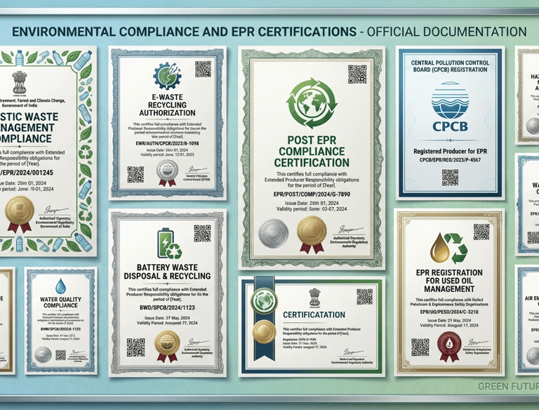 e.g. Plastic Waste, E - Waste, Battery Waste, Post EPR Compliances, Central Pollution Control Board, EPR Registration for Used Oil